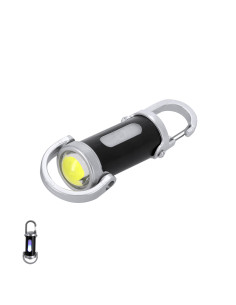 Flashlight made of ABS with carrying carabiner. 4 LEDs, button ignition system and 8 COB lights. 7 fixed and flashing light positions. Practical carry handle at the bottom. 400mAh rechargeable battery, with included 5V Type C charging cable. 4 Leds. 8 COB Lights. 7 Light Modes, Fixed and Flashing. Battery 400 mAh
