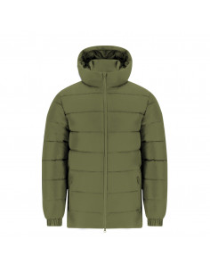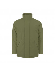 Unisex padded parka made of 100% RPET waterproof fabric (recycled polyester). Features high collar with adjustable foldable hood integrated with Velcro closure, central matching zip with protective flap, and side pockets with matching zip and fixed flap. Includes an inner pocket with Velcro closure. Adjustable cuffs with Velcro for a better fit. Fleece...