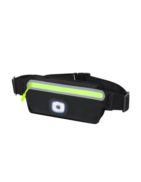 Fanny pack made of durable polyester. Main compartment with reflective zipper closure. On the front it includes a flashlight with 3 light intensities. 300mAh battery, with charging via USB cable. With buckle closure and adjustable strap, specially designed for sports and leisure activities. 4 Leds. 3 Light Modes. Battery 300 mAh