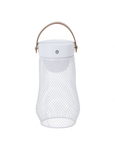 Metal design lamp. Includes top handle in soft PU. Features 3 light modes (white, neutral and warm). Equipped with 24 LEDs. Ideal for both indoor and outdoor spaces. Integrated touch button for power on/off and light mode selection. Equipped with 1,200 mAh rechargeable battery and Type-C input. 24 Leds. 3 Light Modes. Battery 1200 mAh