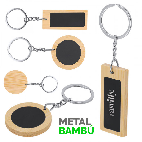 Bamboo and metal keychain. With an area in a rubber finish, ideal for laser engraving with a silver mirror effect.Materials like bamboo promote the use of natural raw materials, reducing pollutant emissions. It comes from a resilient and versatile plant, with fast growth and regeneration, making it an excellent alternative to traditional wood.