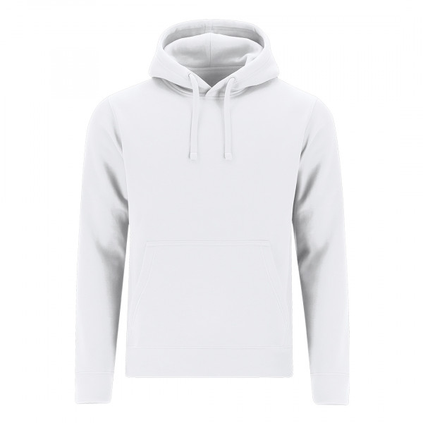 Hooded sweatshirt with lined hood in matching double-layer fabric. Made of cotton and polyester in soft brushed fleece 280 g/m. Features kangaroo pocket, adjustable drawstring with matching metal eyelets, reinforced neck tape, and 1x1 rib knit cuffs and waistband with elastane for better fit and comfort.