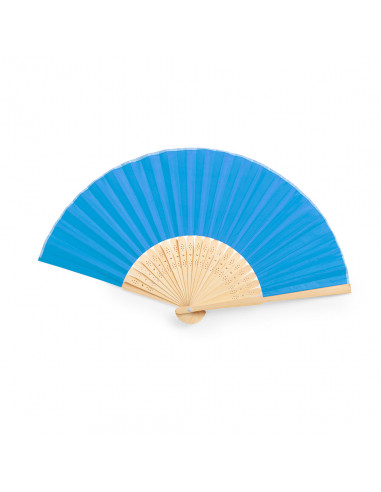 Nature line fan with resistant 190T polyester fabric. Ribs made of flexible bamboo. Available in a wide range of colours.