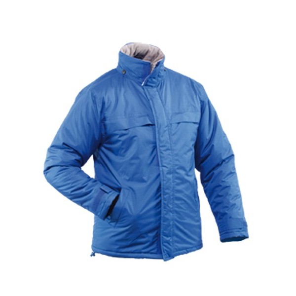 Parka con exterior en suave y resistente ripstop pongee transpirable con tratamiento impermeable antidesgarro. De diseño en vivos colores e interior con grueso forrado. Cuello interior en cálido polar fleece y doble cierre principal: de cremallera con cinta en tirador y tapeta de velcro. Con bolsillos frontales y laterales con tapeta y cierre de cremallera, puños con velcro ajustable y elástico en cintura con accesorio de ajuste. Disponible en tallas S, M, L, XL, XXL. Con cremallera interior para fácil marcaje. Tratamiento Impermeable. Cremallera Interior para Impresión