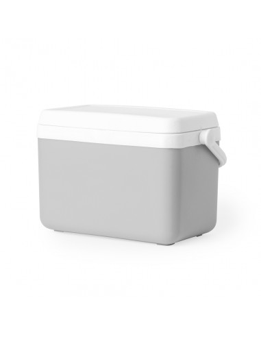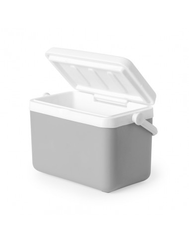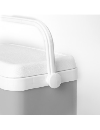 Nevera fabricada en PP de 4L. Atractivo diseño vintage para mantener bebidas y alimentos fríos, de diseño rígido con doble pared. Tapadera de bisagra con cierre de seguridad y asa rígida para un fácil transporte. Con base de color gris y accesorios en blanco. Presentada individualmente en bolsa reciclada. 4 L