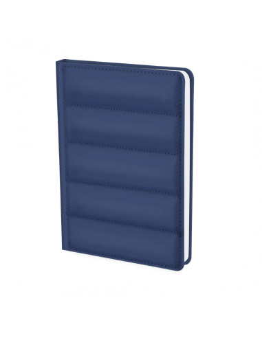 Bloc de notas A5 con cubiertas rígidas y sofisticado diseño acolchado. Fabricado en suave PU. Incluye 110 hojas con disposición a rayas. Portada Rígida y Acolchada. 110 Hojas