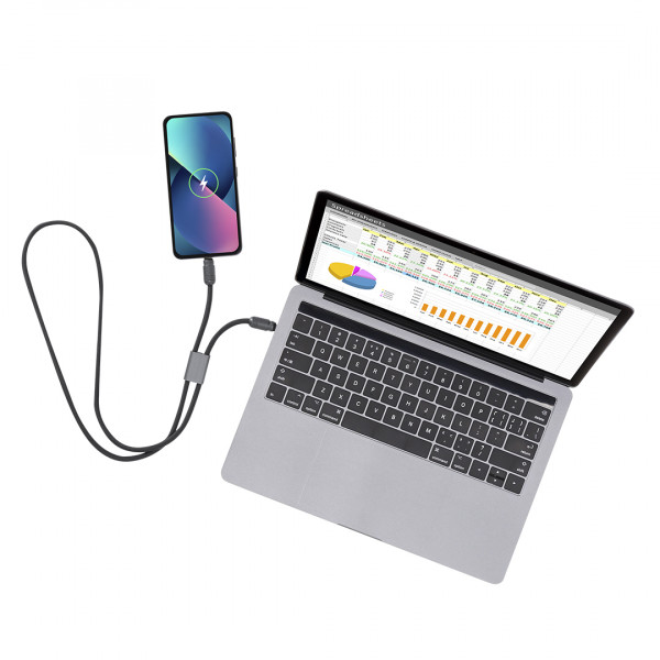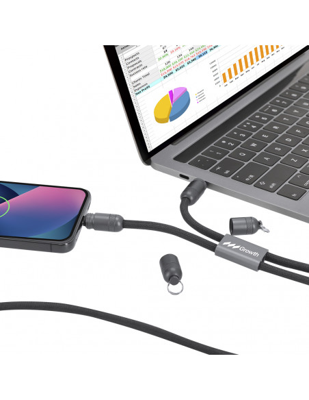 Pulsera cable de carga con función de transferencia de datos y soporte para móvil. Con entrada/salida Tipo C y capacidad de 60W , lo que permite una carga rápida. Funcionalidad y comodidad en un solo accesorio. Apto para transferir datos. Conexión Tipo C PD 60W