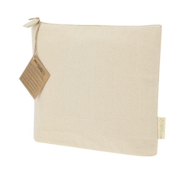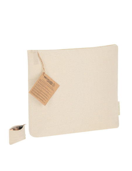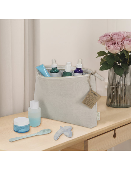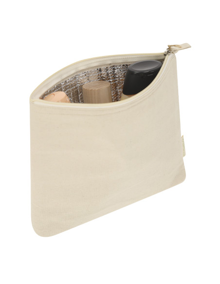 Thermal toiletry bag made mainly of Recycled Cotton 170 g/ m2 in an elegant natural tone. Main compartment with zipper closure, interior with isothermal lining ideal for storing your cosmetic products, and puller in natural tone. Includes Recycled Cotton label.