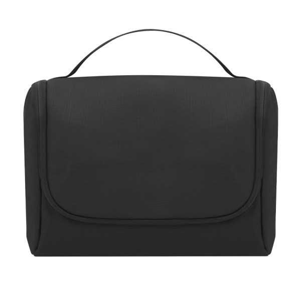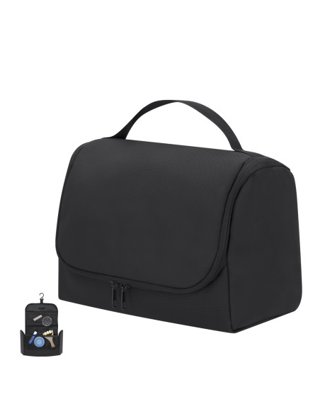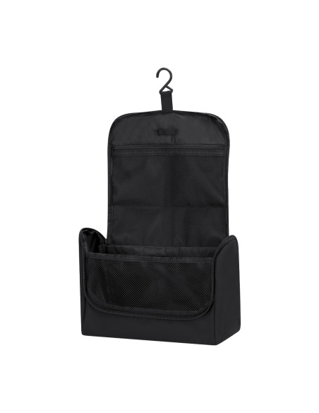 Toiletry bag made of PU to store personal hygiene items, with a practical hook to hold it anywhere. Practical interior with breathable mesh pockets, which allow you to see the objects inside.