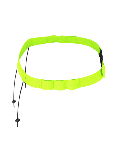 Ergonomic carrier belt with triple attachment system for the bib. Designed for a comfortable and secure fit at the waist, it incorporates a resistant and adaptable buckle closure. It has six elastic compartments ideal for carrying essential items during the race or route.