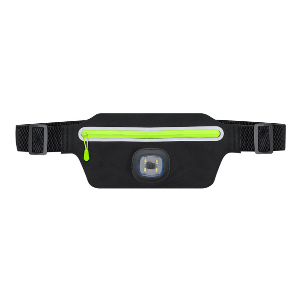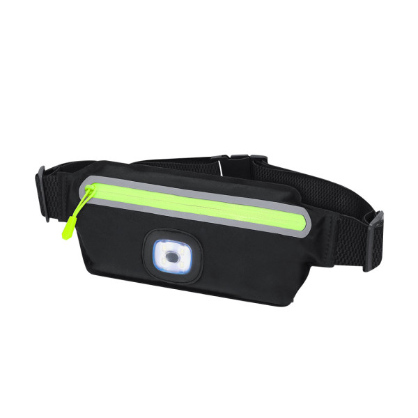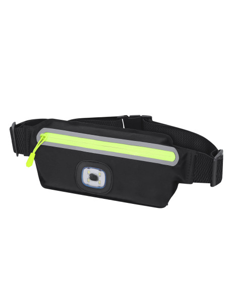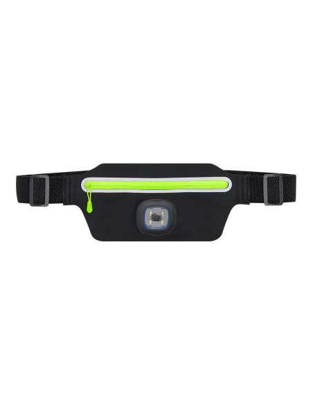 Fanny pack made of durable polyester. Main compartment with reflective zipper closure. On the front it includes a flashlight with 3 light intensities. 300mAh battery, with charging via USB cable. With buckle closure and adjustable strap, specially designed for sports and leisure activities. 4 Leds. 3 Light Modes. Battery 300 mAh