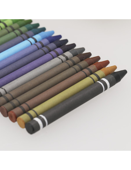 Set of 30 waxes in cylindrical natural cardboard case. Recycled Cardboard comes from the reuse of surplus manufacturing and recycling paper at the end of its useful life, becoming an ecological and sustainable canvas. 30 Crayons
