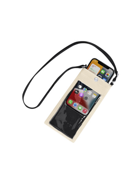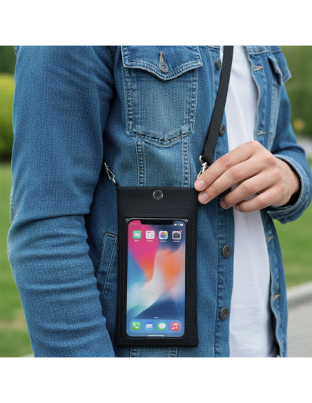 Elegant PU pencil case. With transparent screen with touchscreen functionality. Button closure for added security. Adjustable transport straps. Touch Screen