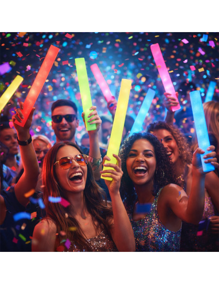 Original light bar, illuminated by bright LEDs. Made of soft and pleasant touch foam, the interior is illuminated thanks to four LED lights. Powered by included button batteries, it is easy to start by means of a button on the base with two different positions (steady light, flashing light). This accessory is ideal for standing out at any event Led Lights. 3 Light Modes, Fixed and Flashing. Button Batteries Included