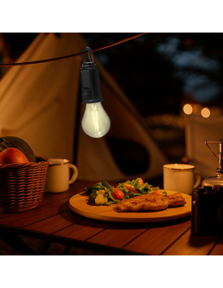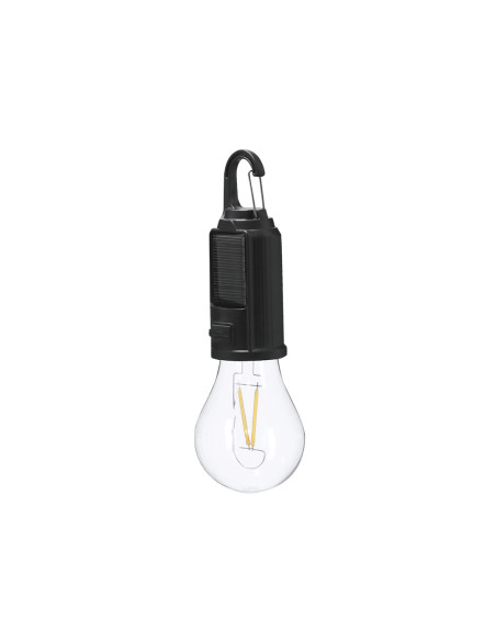 Lamp with original bulb design with ABS body. 300 mAh battery and solar charging. It has a night sensor that activates automatically when it does not receive sunlight. It has charging through Type C cable, in addition to including a carabiner for easy transport. Solar Charging. Night Sensor. Battery 300 mAh