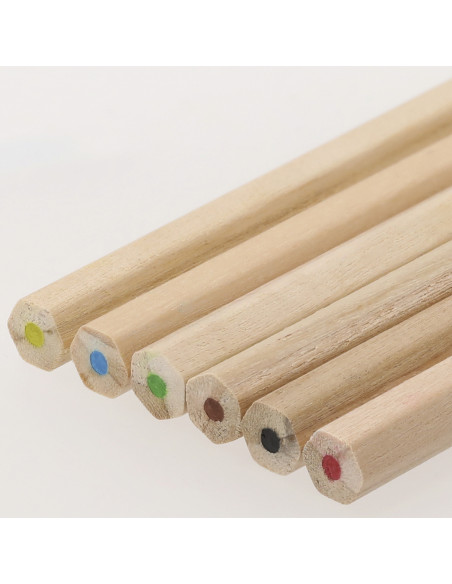 Set of 6 wooden pencils, with hexagonal body and leads in various colors. Presented in a white cardboard case with flap closure. Special for digital printing. 6 Pencils