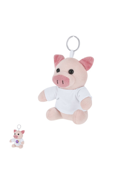 Stuffed piggy keychain with customizable t-shirt with metal ring for easy transport, ideal for sublimation.