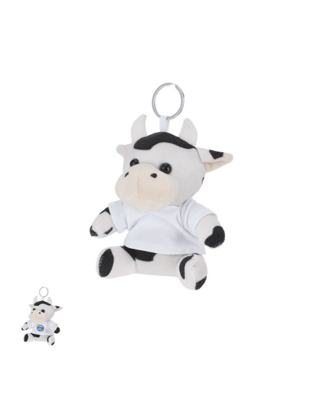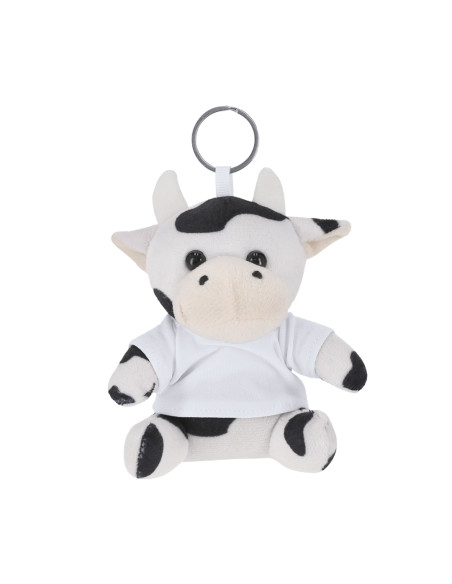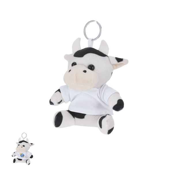 Plush cow keychain with customizable t-shirt with metal ring for easy transport, ideal for sublimation.