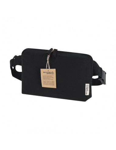 Rectangular belt bag in recycled cotton. With central pocket with zip closure, double puller and adjustable strap with matching buckle closure. Also includes a pocket on the back. With recycled cotton badge.
