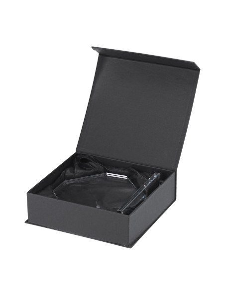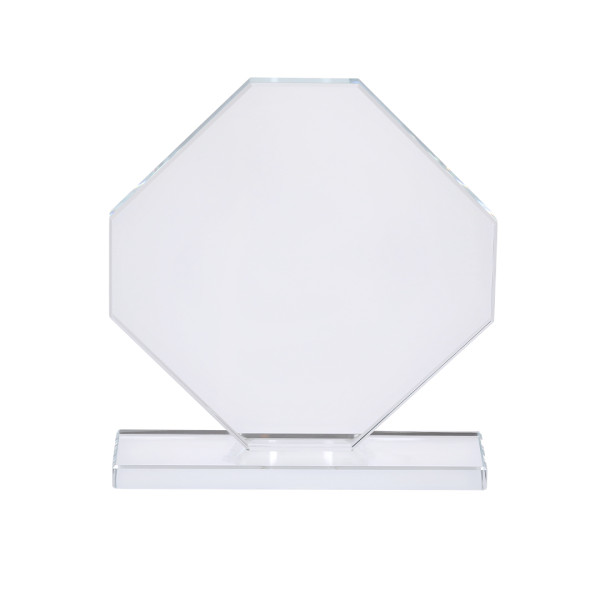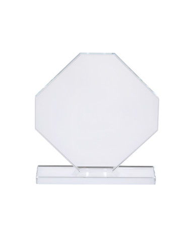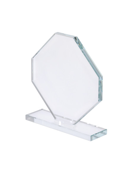 Trophy plate made of thick glass with an elegant octagonal design with stand. Ideal for personalized gifts, recognitions, awards and decoration. Presented in an individual protective case in an elegant design.