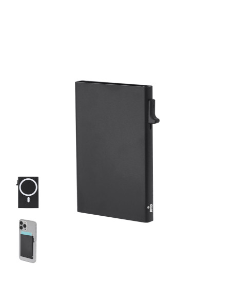 Card holder made of Aluminum with magnetic magsafe holder. Capacity up to 8 cards, with ingenious mechanism to slide and remove access to the cards. RFID (Radio Frequency Identification) security technology that keeps your identity transmission devices secure. RFID badges. Magnetic. RFID Protected. 1 Compartment