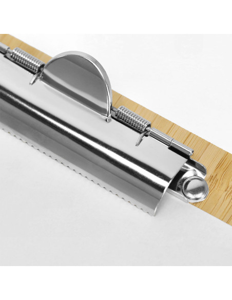 Excellent bamboo organizer size 24.4 x 32.7cm. With sturdy document clip in silver finish.