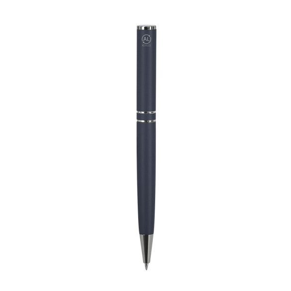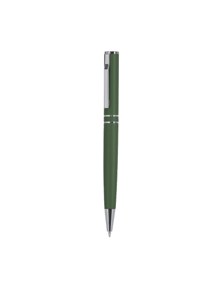 Pen with twist mechanism, made of Recycled Aluminum. Body with matte finish. Includes chrome accessories and matching clip. Jumbo charge and blue ink. . Includes Recycled Aluminum badge. Jumbo Refill
