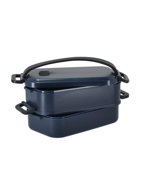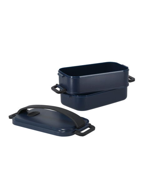1.6L capacity lunch box. Made of recycled PP. Includes 2 independent compartments with airtight closure trays, each with a capacity of 800 ml respectively. PP Recycled is a recycled and highly recyclable plastic, highly resistant and suitable for a multitude of applications. Food Grade certified, ensuring safety when food comes into contact with the material used to manufacture the product. 2 Compartments 800 ml. Safety Catch