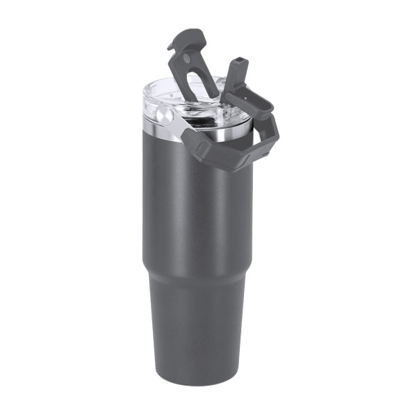 Thermal vessel with 900 ml capacity with double wall. Made of recycled stainless steel. It has a double drinking system: hole with hermetic closure and integrated straw, adapting to usage preferences. With hermetic sealing system lid. Includes practical carrying handle, ideal for easy transport in any situation. BPA free. With Recycled Stainless Steel badge. 900 ml