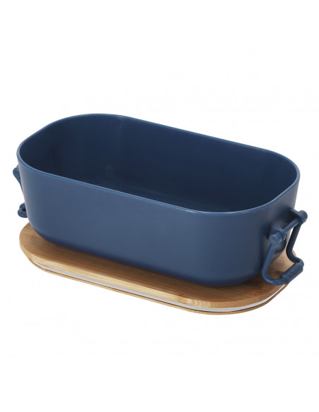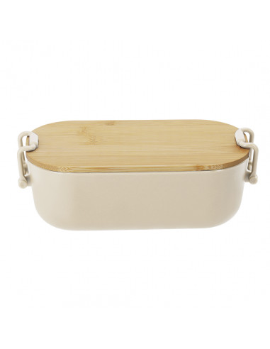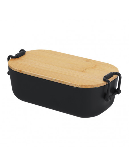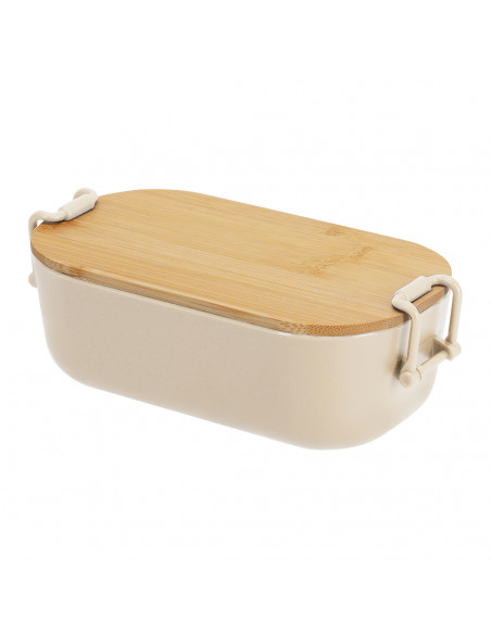 Lunch box with 850 ml capacity. Made of durable recycled PP with airtight bamboo lid. Features side safety locks. Includes Recycled PP emblem. Recycled PP is a recycled and highly recyclable plastic, strong and suitable for multiple applications. With Food Grade certification, guaranteeing safety when food comes into contact with the material used to manufacture the product. 850 ml