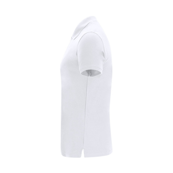 Short sleeve polo, female fit, 180 g/m2. Made of 100% piqué cotton. Two-button placket in the same tone with a matte finish. With reinforced seam cover on the inside of the neck. Ribbed trim on sleeves and collar. Side seams with openings at the bottom.