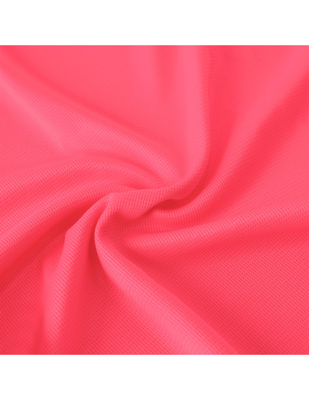 Short sleeve technical raglan t-shirt, with a feminine fit, made of 100% polyester waffle interlock fabric, incorporates Cool Dry technology, which promotes breathability and quick drying. Design with raglan sleeves and overlock seams in armholes and sleeves. Matching collar and cover seams. Breathable