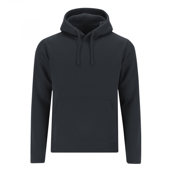 Hooded sweatshirt with lined hood in matching double-layer fabric. Made of cotton and polyester in soft brushed fleece 280 g/m. Features kangaroo pocket, adjustable drawstring with matching metal eyelets, reinforced neck tape, and 1x1 rib knit cuffs and waistband with elastane for better fit and comfort.