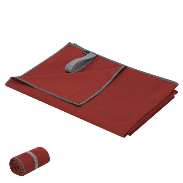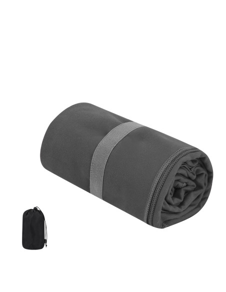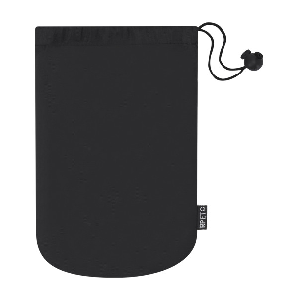 Ultra-absorbent 130x80cm towel made of 200 g/m2 RPET. It has an elastic strap for when folded to store it, presented in a RPET polyester bag for easy transport. With distinctive RPET logo. Polyester RPET Pouch