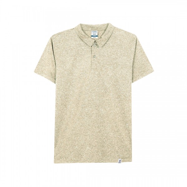 Unisex technical polo. Made from 100% recycled polyester fabric and melange effect colour. Its 150g/m2 fabric makes it a lightweight garment ideal for sports and everyday wear. Breathable fabric easy to wash and quick drying. Very soft feel and modern cut, with matching color two-button placket. Double stitched hem and sleeves for durability and resistance to intensive wear. With outer RPET label, indicative of a recycled origin product. Easily removable label and available in sizes XS, S, M, L, XL and XXL. Breathable