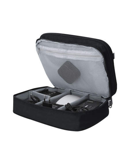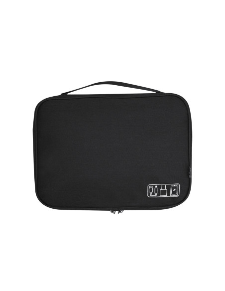 Large organizer case made of RPET 600D. Includes 3 full-opening pockets with double metal puller and equipped with multiple types of interior pockets. Includes handle for easy transport. With RPET badge.