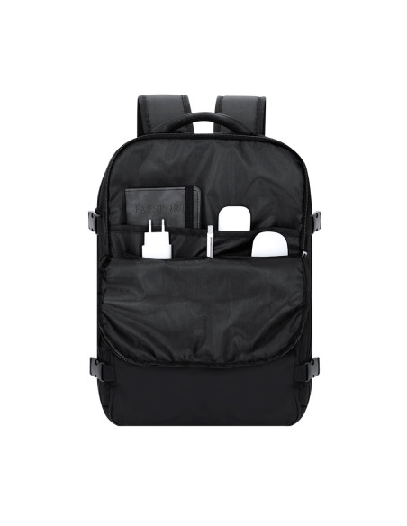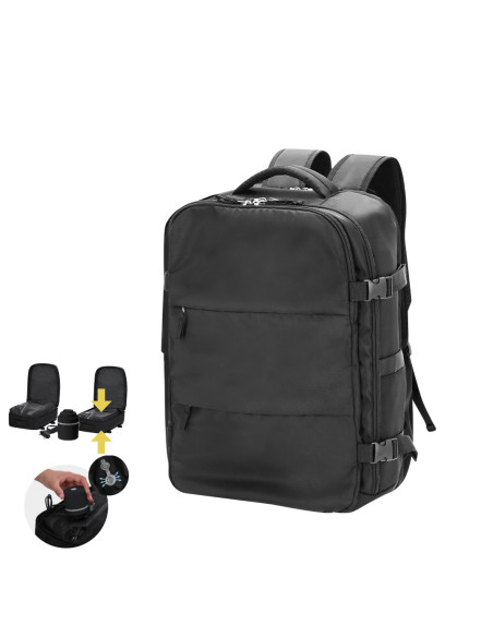 Vacuum backpack with elegant design in soft nylon includes 35W vacuum pump. It has an extendable main compartment, in which there is an interior vacuum pocket. The third compartment has a pocket with multiple storage options. In addition to two small pockets on the front. Sides with buckles for adjustment. Padded back and straps, and trolley strap. Grip handle and on top. Padded Back and Shoulder Straps. Vacuum Pump Included