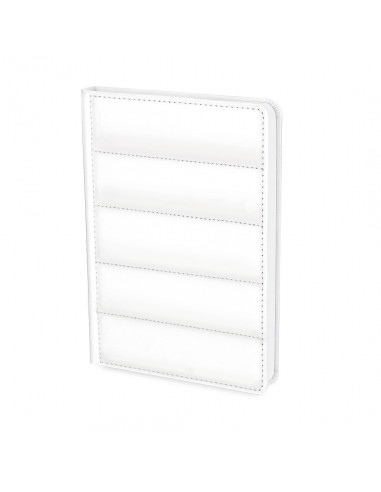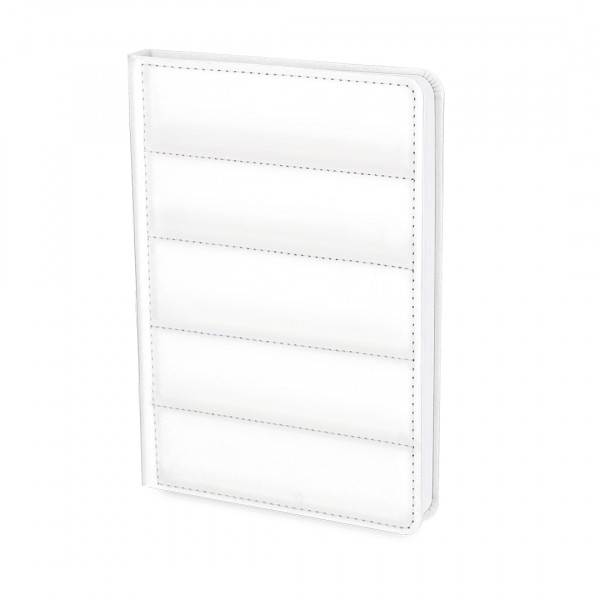 Bloc de notas A5 con cubiertas rígidas y sofisticado diseño acolchado. Fabricado en suave PU. Incluye 110 hojas con disposición a rayas. Portada Rígida y Acolchada. 110 Hojas