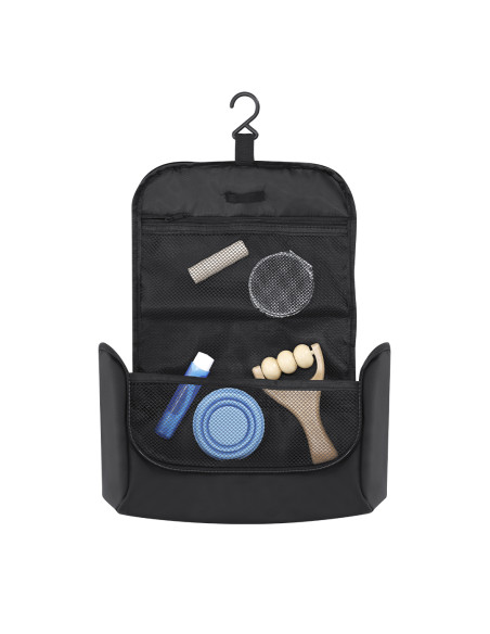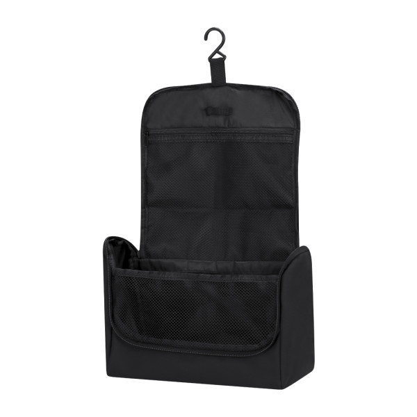 Neceser fabricado en PU para guardar los objetos de higiene personal, con práctico gancho para poder sujetarlo en cualquier sitio. Práctico Interior con bolsillos de redecilla transpirables, que permiten ver los objetos que hay dentro.