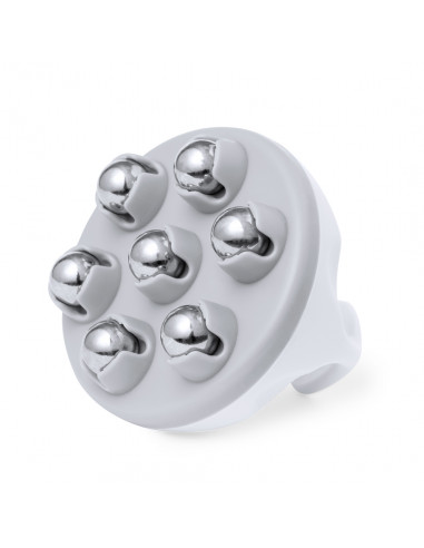 Masajeador fabricado en resistente ABS con bolas metálicas. Diseñado para brindar alivio y bienestar. Su empuñadura ergonómica garantiza un manejo cómodo, mientras que sus esferas metálicas efecto frío ayudan a la absorción de cremas, relajando la piel cansada. Presentado en caja individual de diseño kraft.