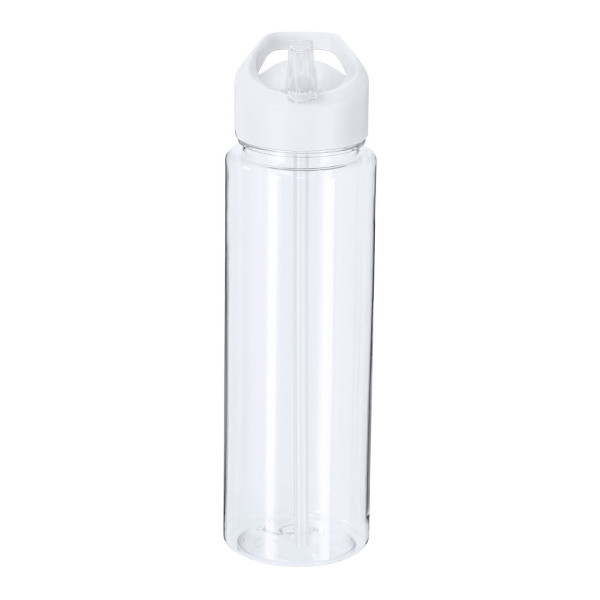 Bidón fabricado en RPET de 750 ml de capacidad con sistema de fácil apertura con dosificador de pajita y asa de transporte a juego. Libre de BPA.El material RPET se elabora a partir de plástico reciclado, para así fomentar la reutilización de residuos plásticos y ayudar a la sostenibilidad del planeta. 750 ml