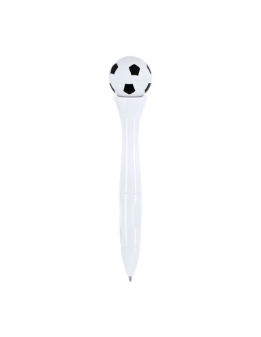 Bolígrafo antiestrés de mecanismo giratorio y diseño de balón de futbol. Cuerpo en acabado sólido brillante. Con tinta azul.
