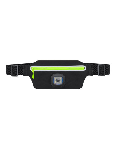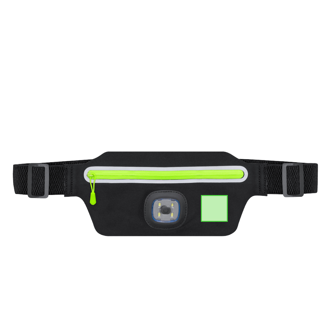 Riñonera fabricada en resistente poliéster. Compartimento principal con cierre de cremallera reflectante. En la parte frontal incluye una linterna con 3 intensidades de luz. Bateria de 300mAh, con carga a través de cable USB. Con cierre de hebilla y cinta ajustable, especialmente diseñada para actividades deportivas y de ocio. 4 Ledes. 3 Posiciones de Luz. Batería 300 mAh