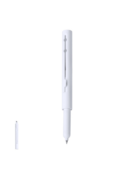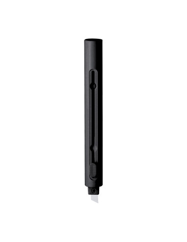 Bolígrafo cúter con cuerpo en ABS en acabado mate. Con pulsador que permite que por un extremo salga el cuerpo del bolígrafo en tinta azul y en el otro extremo punta de metal del cúter se puede retraer cuando no está en uso para mayor seguridad. Ideal para cortar con precisión.