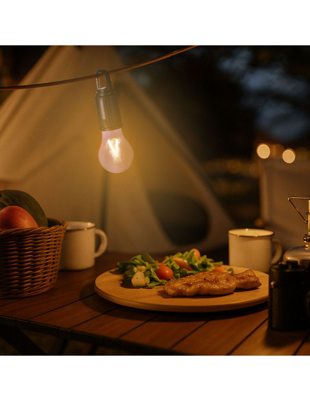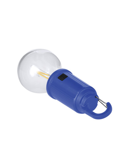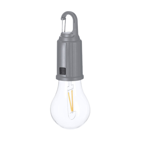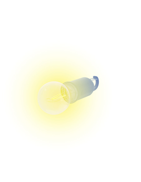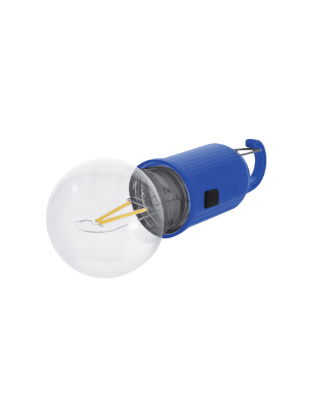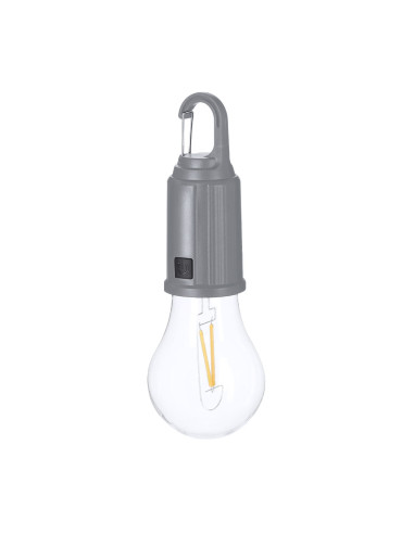 Original lámpara bombilla con cuerpo en ABS en color. Lampara en original forma de bombilla transparente con luz LED en X. Presenta 1 modo de luz ajustable, botones de ON/OFF en acabado gomoso. Batería recargable de 400mAh, incluye cable de carga USB-C. Además, incluye práctico y funcional mosquetón para su fácil transporte. Intensidad de Luz Regulable. Batería 400 mAh