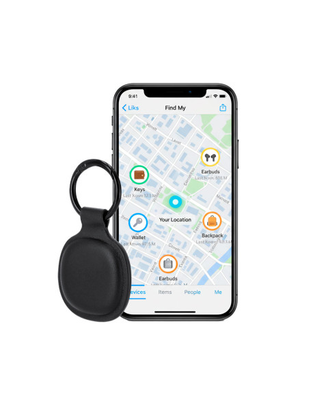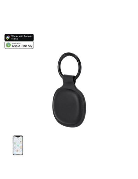 Localizador inteligente con elegante diseño en PU.Con sistema de conexión dual, compatible con Apple Find My y Android Find Hub, el cual te permite rastrear tus pertenencias en tiempo real, de forma rápida y precisa. Incluye una anilla metálica en elegante negro cromado. Pila de botón incluida. Pila Botón Incluida