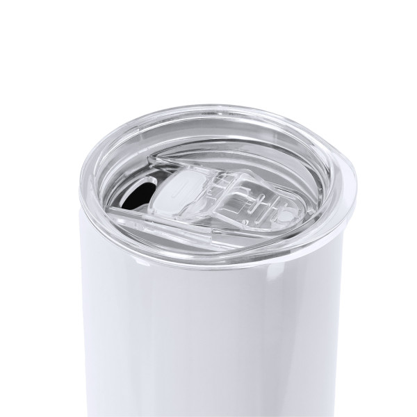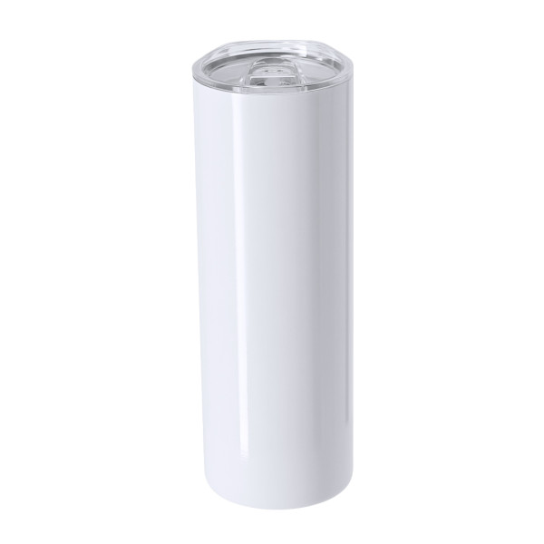 Vaso térmico fabricado en acero inox de doble pared y 600ml de capacidad. Especialmente diseñado para marcaje en sublimación, acabado en blanco brillo. Equipado con un dosificador en la tapa transparente, diseñado para evitar fugas. Libre de BPA.Es ideal para tener en tu escritorio, mesa o en cualquier superficie donde disfrutar tranquilamente de tu bebida favorita. 600 ml