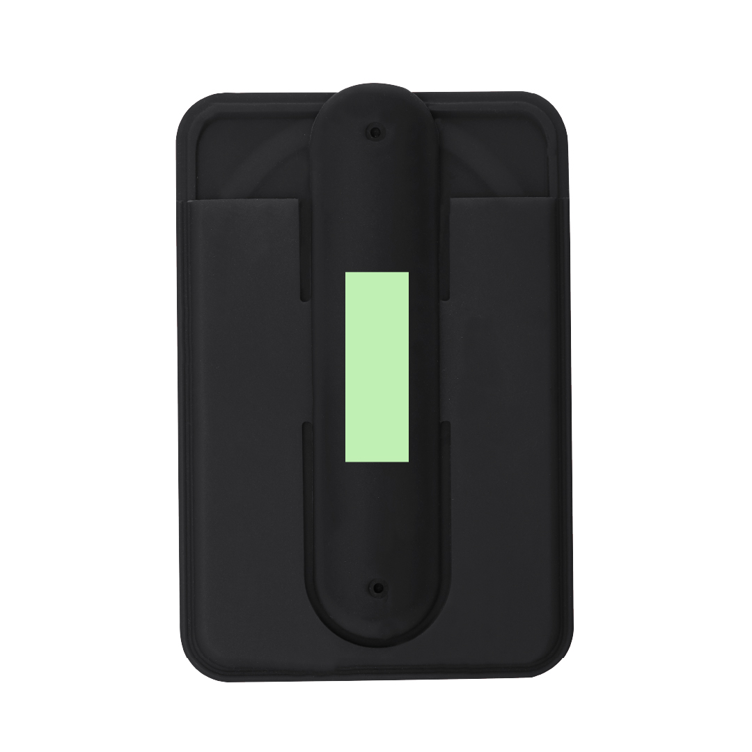 Tarjetero soporte magnético fabricado en silicona. Ideal para visualizar tu smartphone en cualquier posición gracias al diseño multiposición de sus asas plegables. Con compartimento para tarjeta. Magnético. 1 Compartimento
