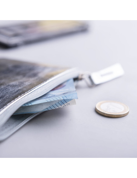Monedero de diseño super cuqui con suave cuerpo acabado en brillante polipiel. Disponible en colores dorado, plateado y oro rosa. Compartimento principal con cierre de cremallera y tirador a juego.