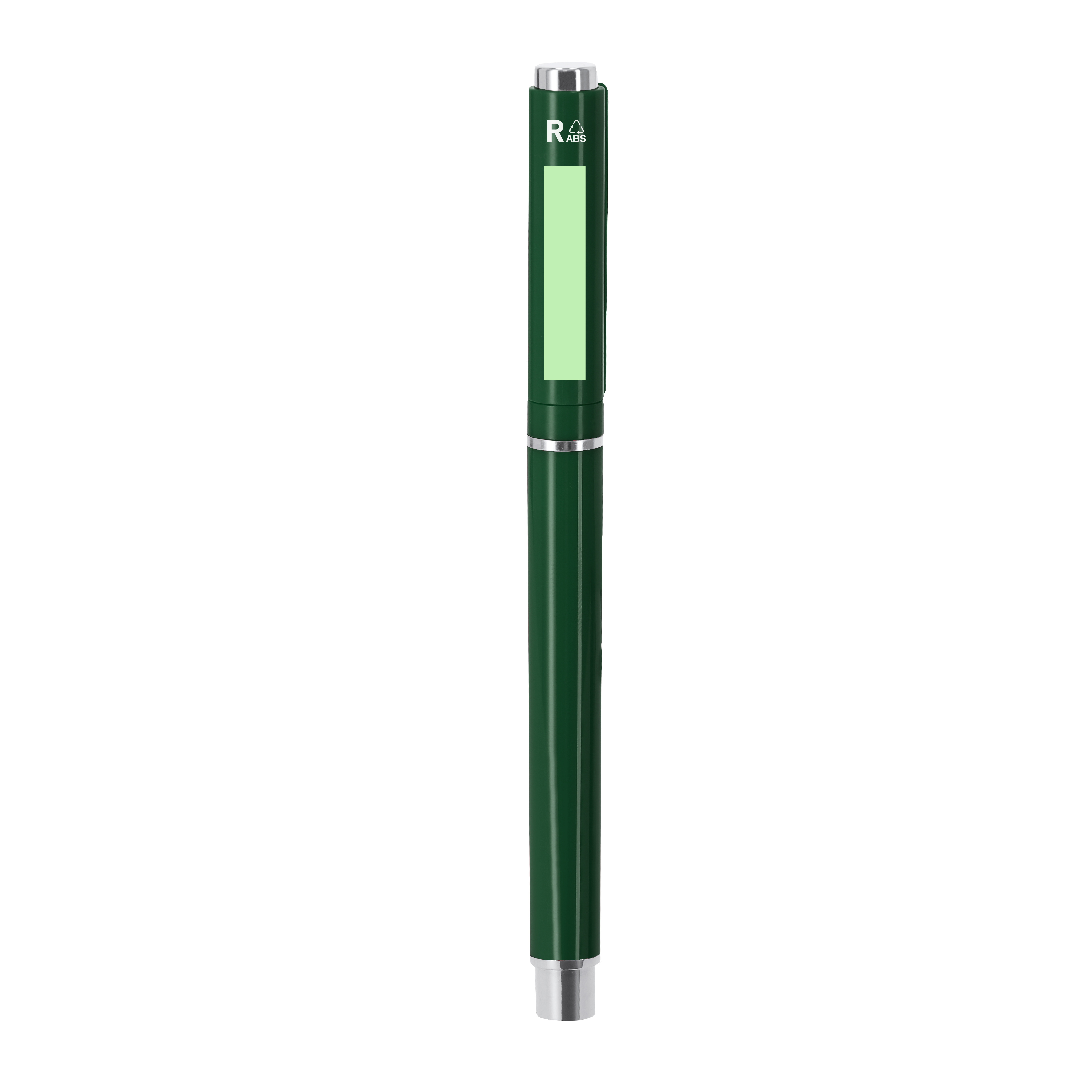 Elegante roller fabricado en ABS Reciclado. Detalles de acabado plateado, cuerpo en acabado sólido. Con cartucho jumbo, en tinta azul y con cierre de capucha. Incluye distintivo RABS. Carga Jumbo